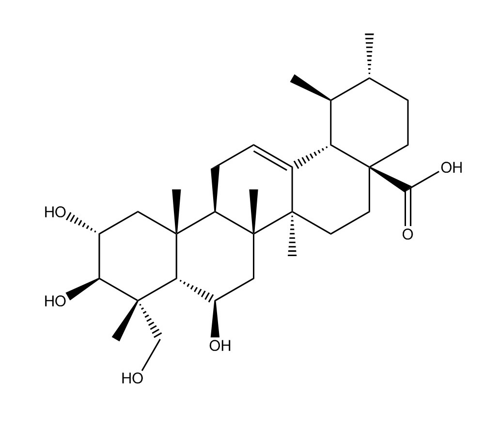 【英文別稱】 (2alpha,3beta,4alpha,6beta)-2,3,6,23-tetrahydroxy-urs-12-en-28-oic acid