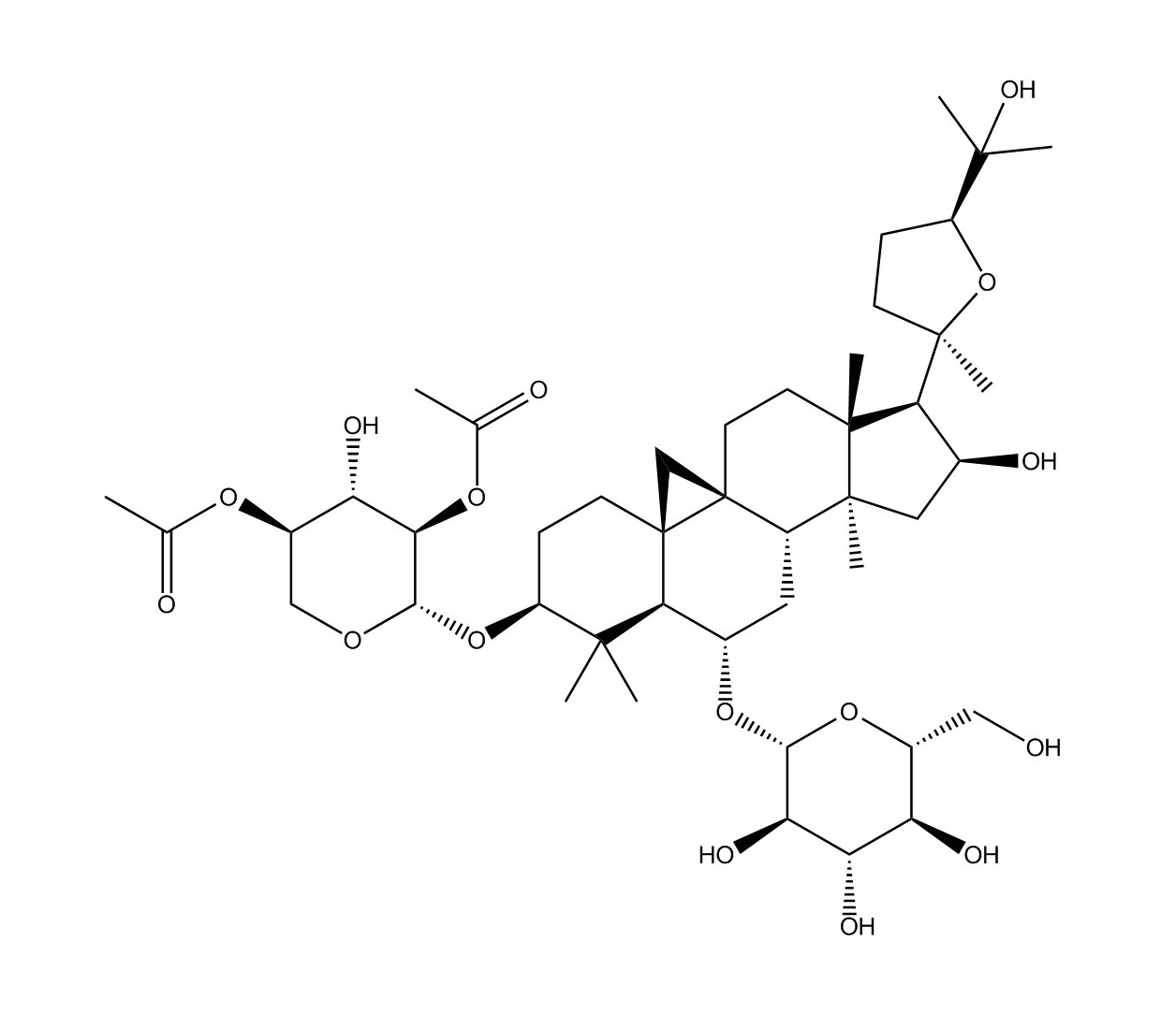 【英文別稱】 (3β,6α,9β,16β,20R,24S)-3-[(2,4-Di-O-acetyl-β-D-xylopyranosyl)oxy]-16,25-dihydroxy-20,24-epoxy-9,19-cyclolanostan-6-yl β-D-glucopyranoside