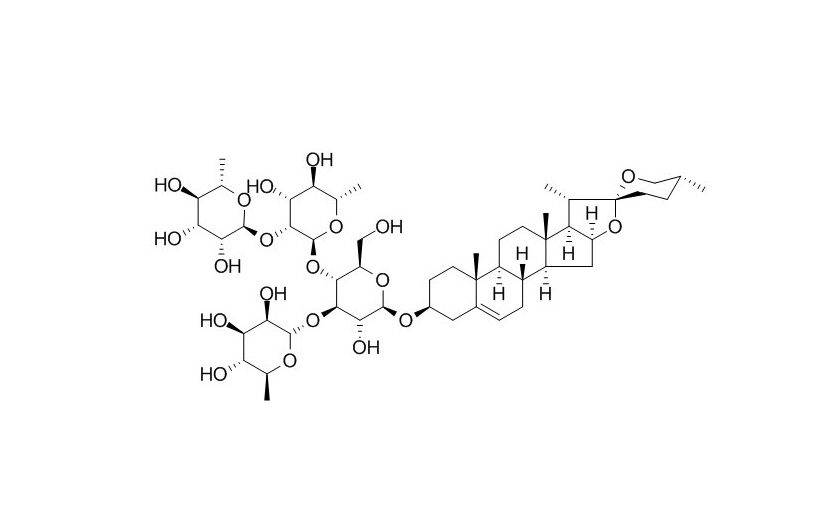 重樓皂苷E|76296-73-6[1]. Ong SL, et al. Porcine Pancreatic Lipase Inhibitory Agent Isolated from Medicinal Herb and Inhibition Kinetics of Extracts from Eleusine indica (L.) Gaertner. J Pharm (Cairo). 2016;2016:8764274.