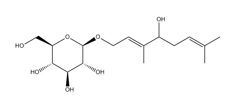 【英文別稱】 (2E,4S)-4-Hydroxy-3,7-dimethyl-2,6-octadien-1-yl beta-D-glucopyranoside