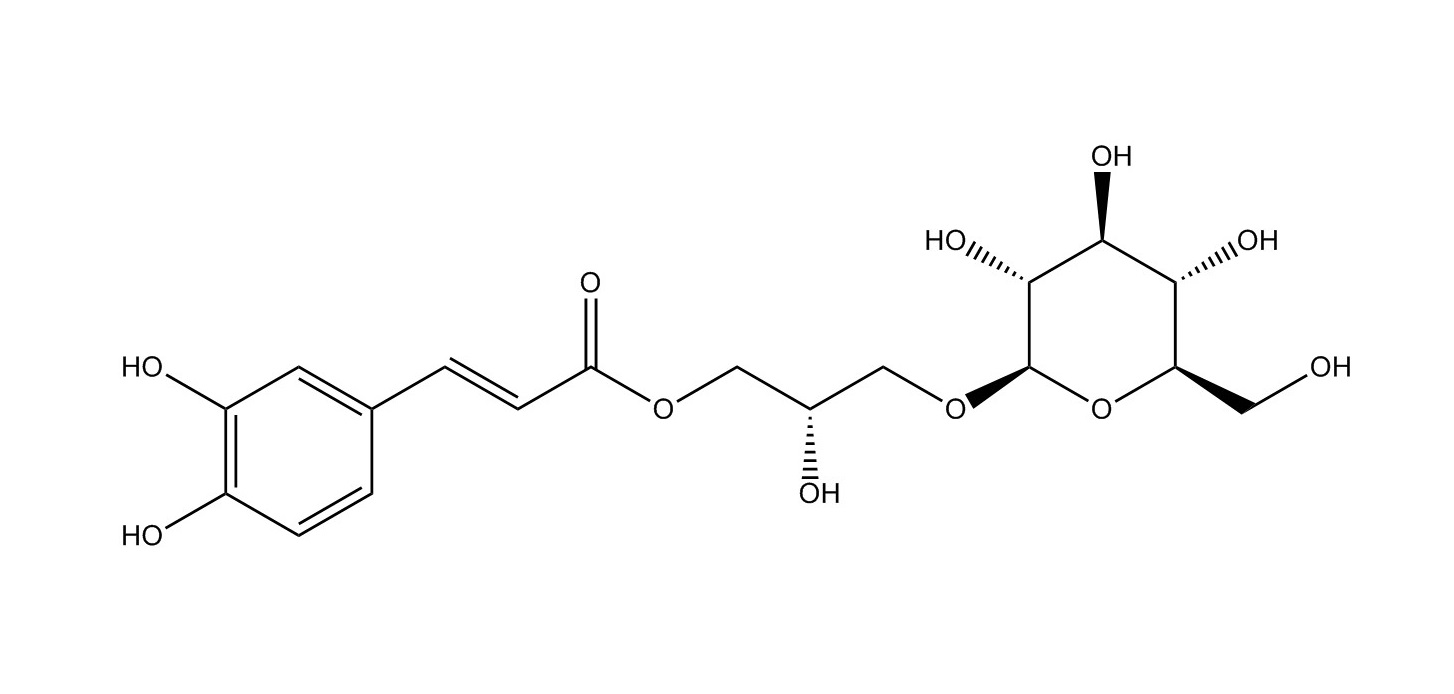 【英文別稱】 [(S)-3-[[(2E)-3-(3,4-Dihydroxyphenyl)-1-oxo-2-propenyl]oxy]-2-hydroxypropyl]β-D-glucopyranoside