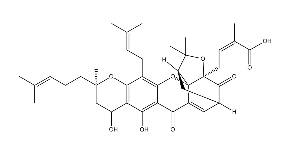 【英文別稱】 2-Butenoicacid,4-[3a,4,5,7,10,11-hexahydro-8,9-dihydroxy-3,3,11-trimethyl-13-(3-methyl-2-buten-1-yl)-11-(4-methyl-3-penten-1-yl)-7,15-dioxo-1,5-methano-1H,3H,9H-furo[3,4-g]pyrano[3,2-b]xanthen-1-yl]-2-methyl-Chemicalbook;4-[3a,4,5,7,10,11-Hexahydro-8,9-dihydroxy-3,3,11-trimethyl-13-(3-methyl-2-buten-1-yl)-11-(4-methyl-3-penten-1-yl)-7,15-dioxo-1,5-methano-1H,3H,9H-furo[3,4-g]pyrano[3,2-b]xanthen-1-yl]-2-methyl-2-butenoicacid