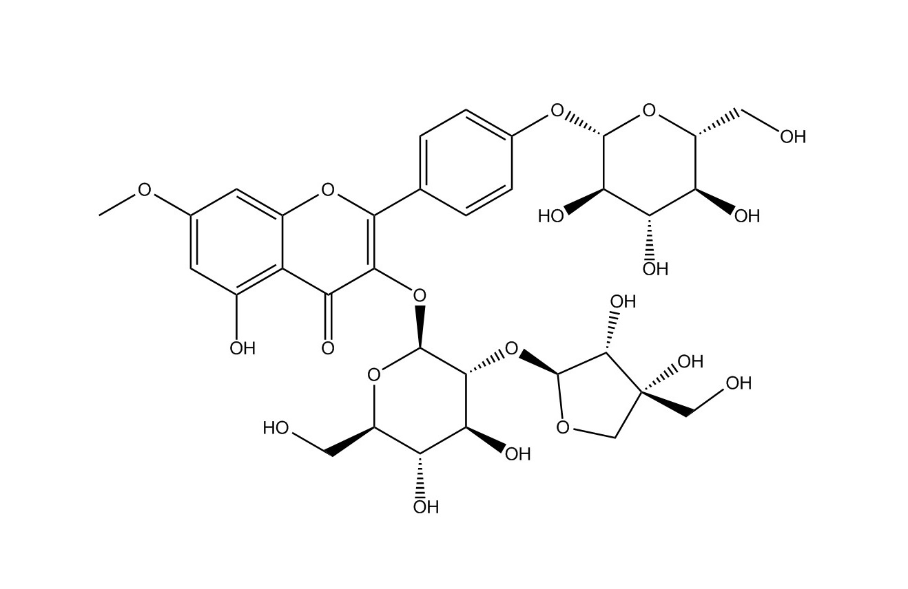 【英文別稱】 3-o-β-D-apiofuranosyl(1-2)-β-D-glucopyranosyl rhamnocitrin 4'-o-β-D-glucopyranoside